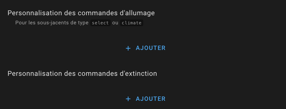 To customize the commands, click on Add at the bottom of the page for both the on and off commands: