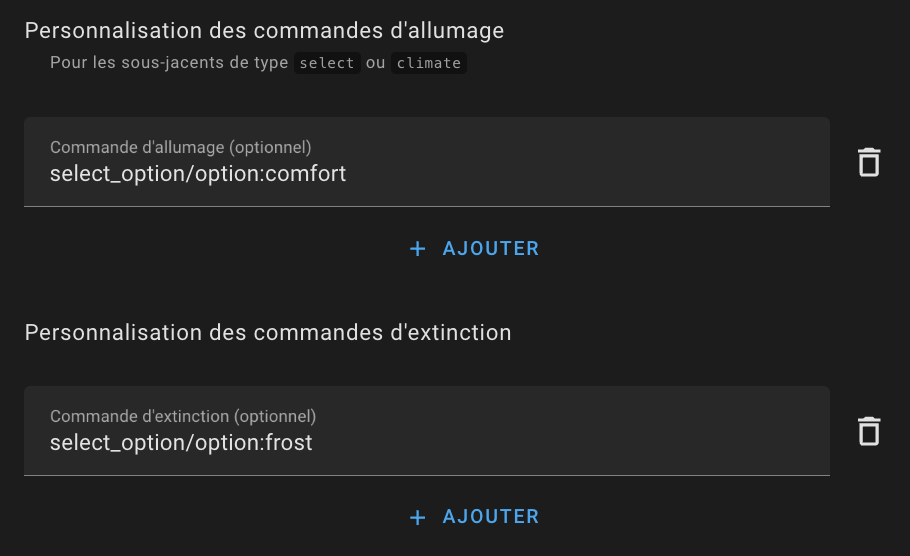 command[/attribute[:value]](e.g.,select_option/option:comfortorturn_on) without spaces or special characters except_. - There must be as many commands as there are declared underlying devices, except when all underlying devices are
